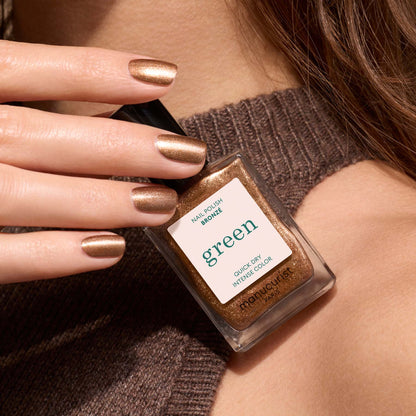 Třpytivý hnědý lak na nehty z řady Green. Lichotivější s měděným nádechem pro zářivý vzhled po celé léto.