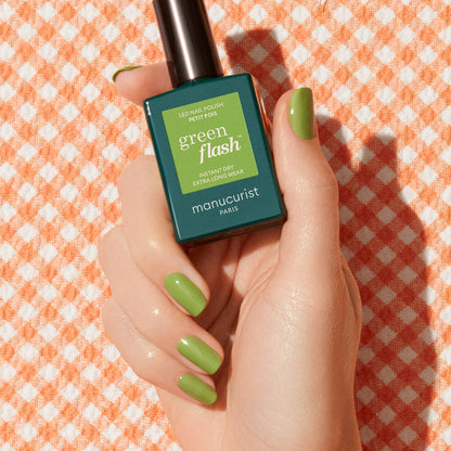 Světle zelený gelový lak Green Flash™. Jemná a živá zelená, jako čerstvý jarní výhonek.