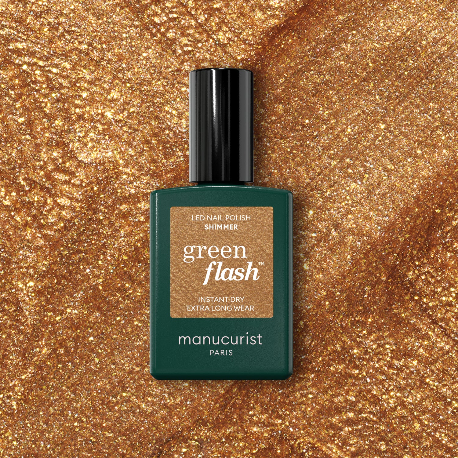 LED gelový lak Green Flash s medově glazovaným bronzovým odstínem a chladnými podtóny.