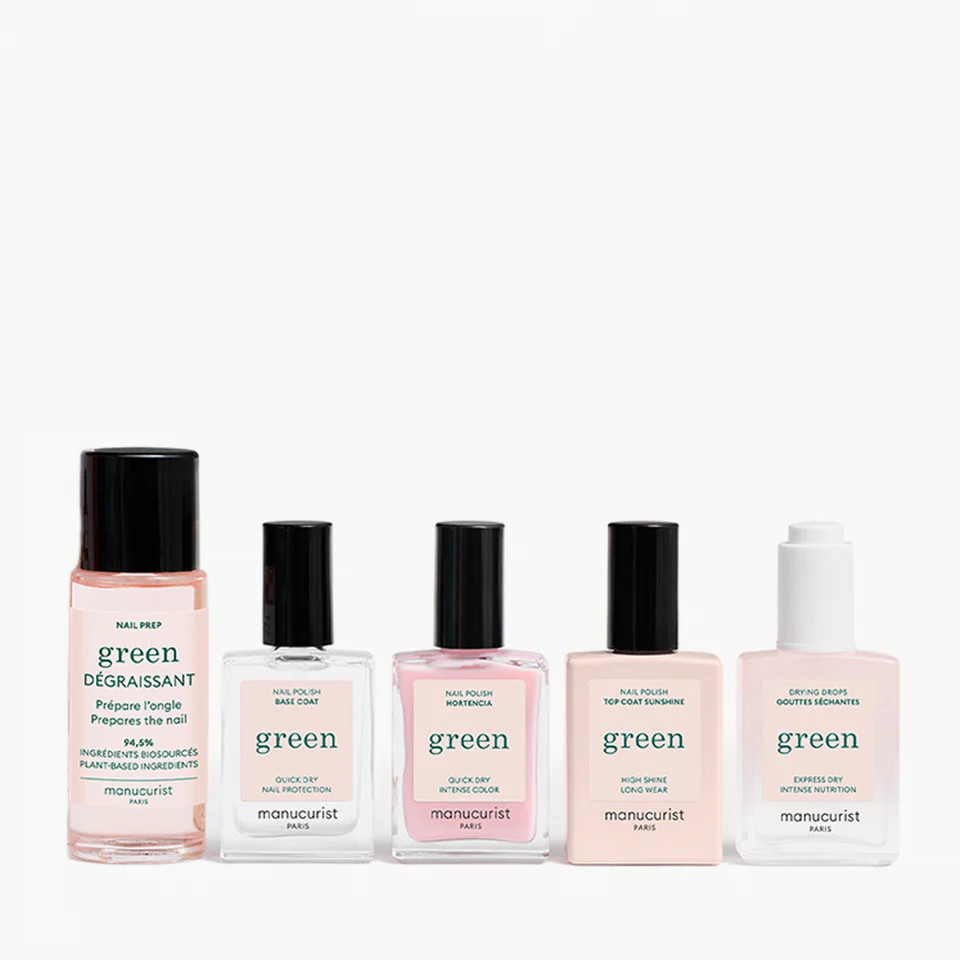 Základní řada pro snadnou a rychlou manikúru Green. Výsledek, expresní schnutí na čerstvém vzduchu, výdrž a lesk až 7 dní, gelový efekt bez lampy. Obsahuje přípravek na nehty, podkladový lak Green, vrchní lak Green a vysoušecí kapky. 99% rostlinných složek, bez acetonu, obohaceno o sladký mandlový olej.
